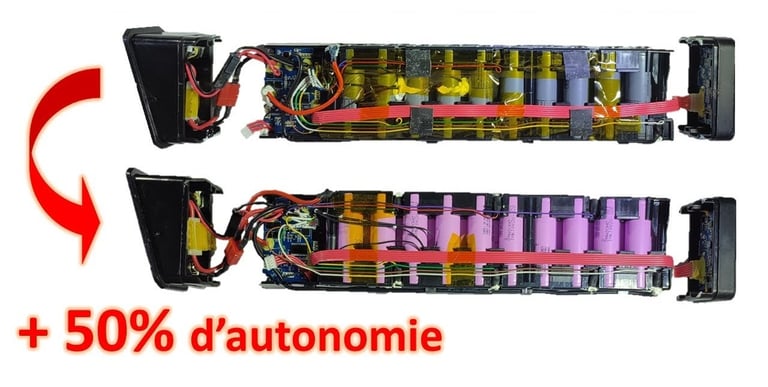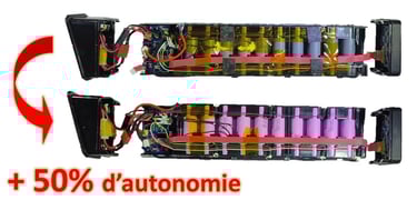 La solution : Augmenter la capacité de votre batterie ! Dans le même volume de batterie nous pouvons soit ajouter des cellules soit remplacer toutes les cellules par des cellules de plus grande capacité. Il s'agit en fait d'un reconditionnement à neuf amélioré.